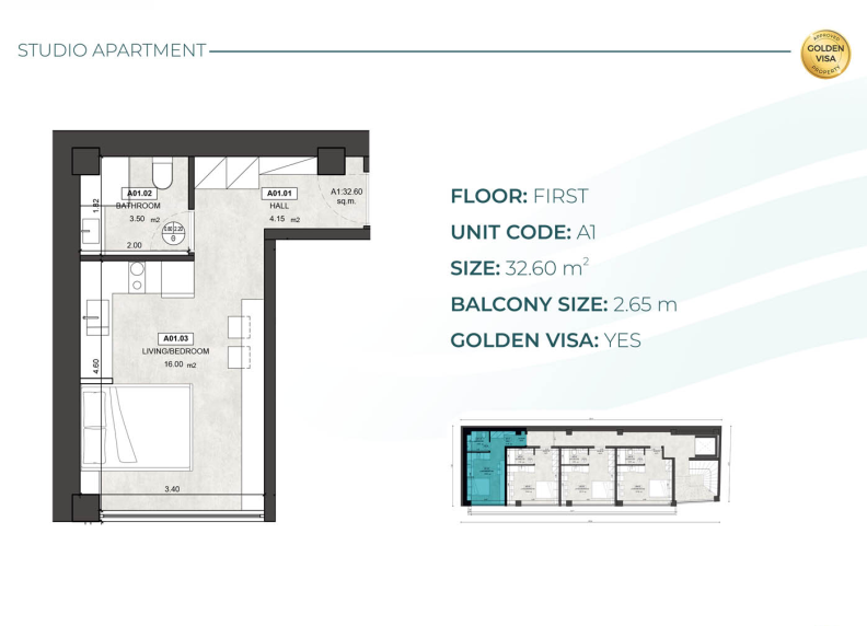 • Property Size: 32.6 m²